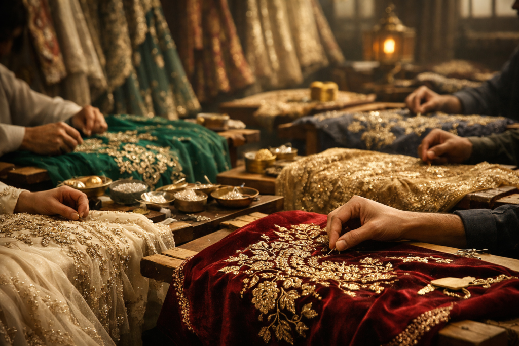 Across the country, in village homes softened by time, in modest karkhanas echoing with rhythm, and along narrow, time-worn lanes, live the true custodians of craft. Unnamed designers, master weavers, hereditary embroiderers, and artisans whose knowledge is not written, but inherited—passed from hand to hand, generation to generation. They create not for recognition, but for perfection. Their stories rarely find their way into headlines, yet their work forms the very fabric of India’s cultural identity. Artistry exists to honour them.